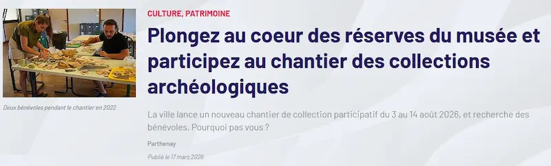 Atelier bénévole d'une semaine (2 sessions au choix - sur inscription) cela n’est pas un chantier de fouille. Les missions […]